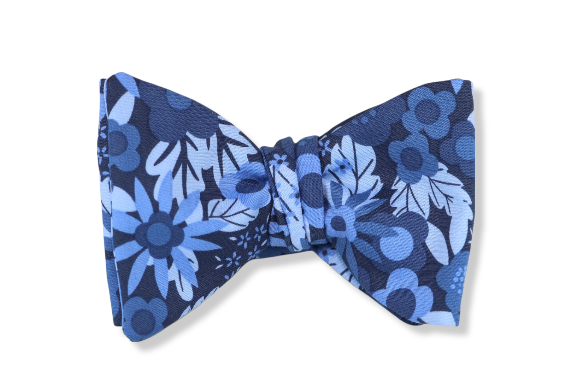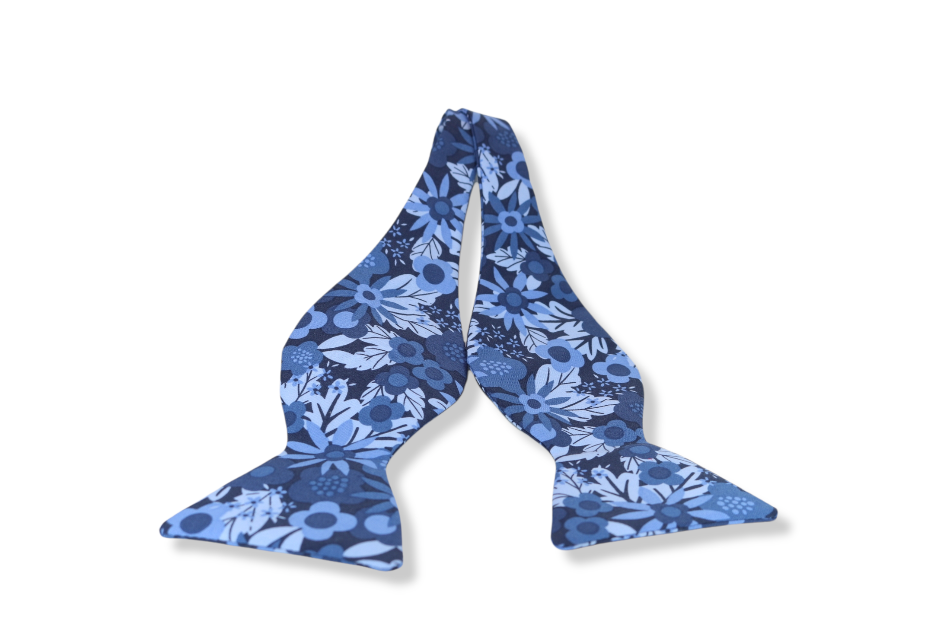 A self-tie bow tie never goes out of season. Shades of blue floral pattern butterfly design makes for an amazing modern bow tie. It easy transforms from casual, formal or business depending on the occasion. Perfect for a black, beige, gray, brown, tan or gold suit.