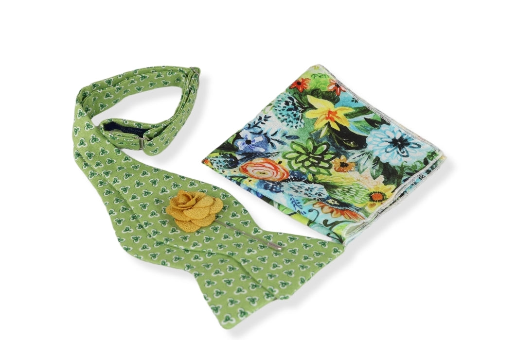 Gabe Green Floral Bow Tie, Pocket Square and Lapel Pin Set