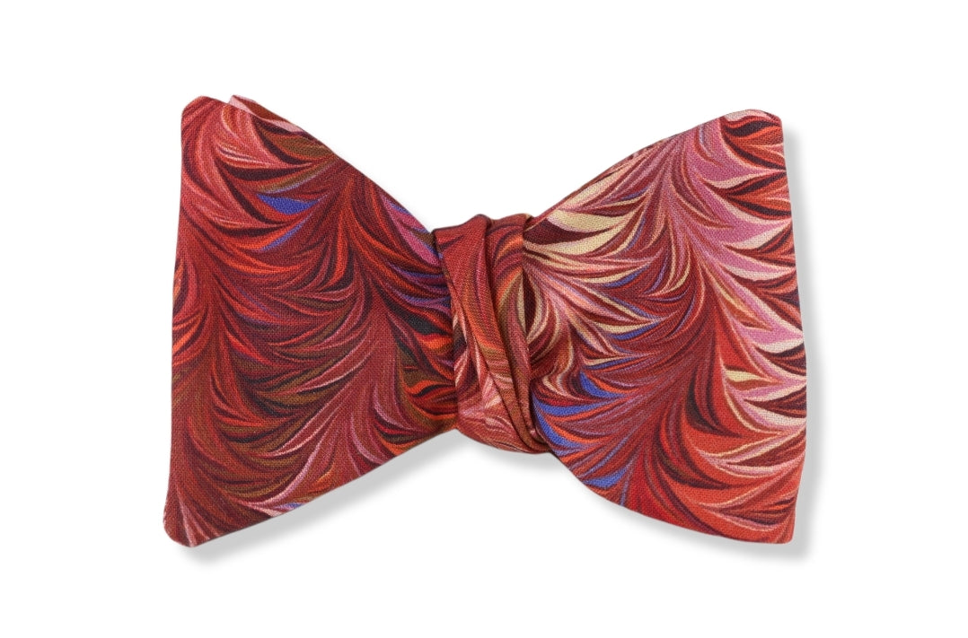 When a gentleman is looking for the right accessory to add to his suit the Kirklees handmade butterfly bow tie is a great choice. The vibrant orange, rust, blue and beige colors make any outfit standout.