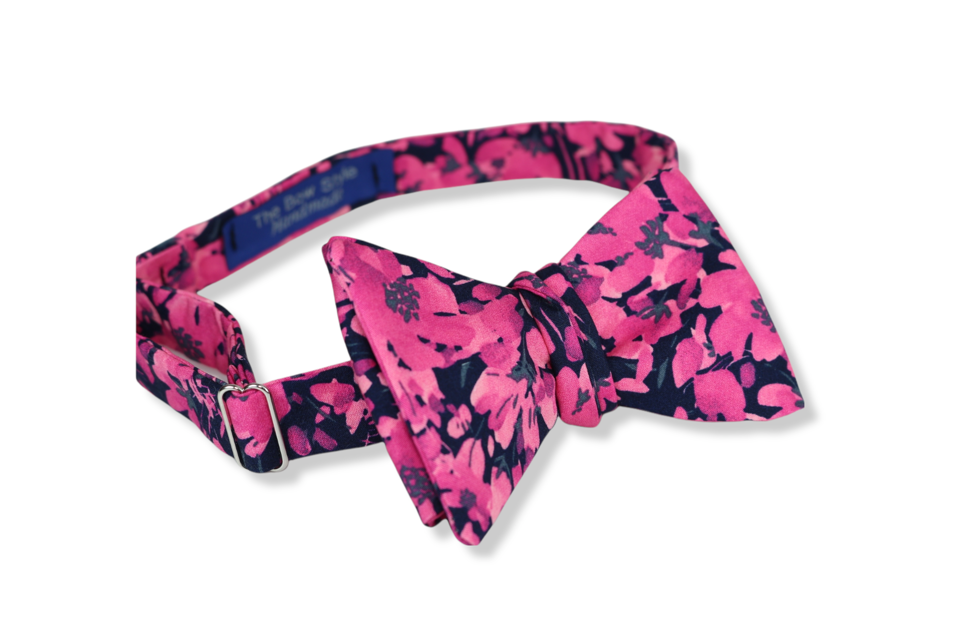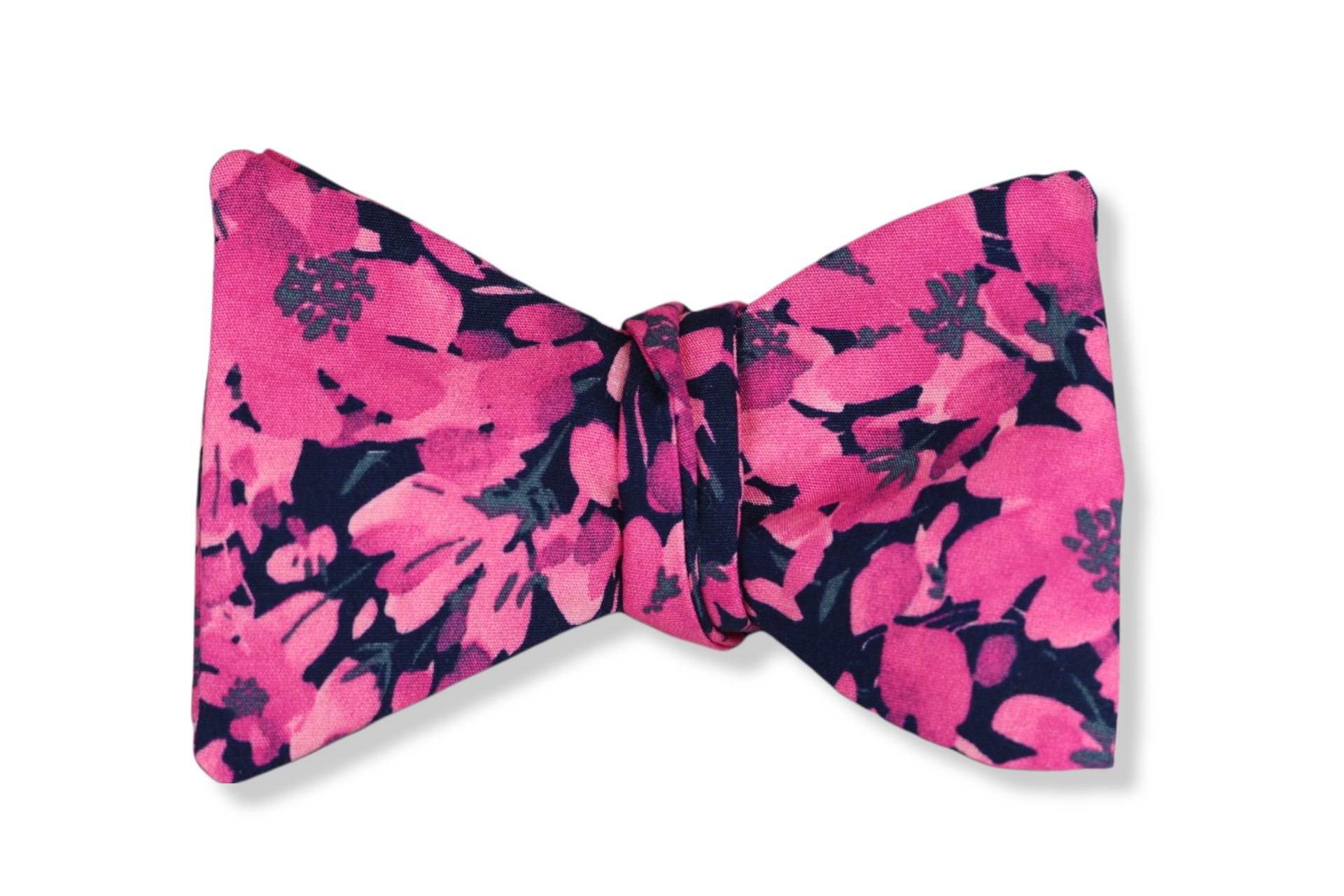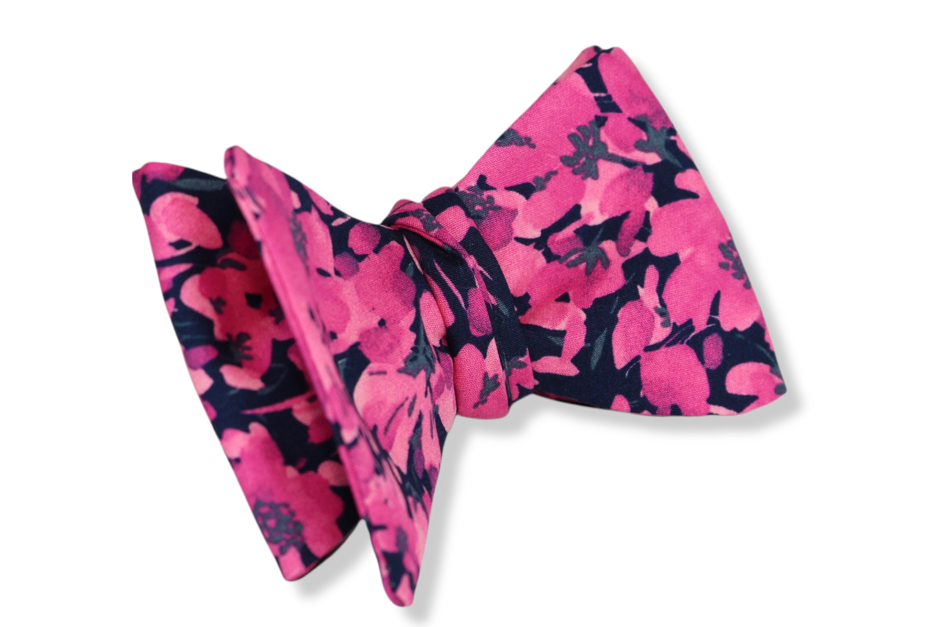 A self-tie bow tie never goes out of season. Pink, blue and gray floral pattern butterfly design makes for an amazing modern bow tie. It easy transforms from casual, formal or business depending on the occasion. Perfect for a blue, beige, gray, tan or gold suit.